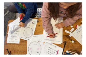 現在他們七歲和八歲了,每次外出吃飯,我會拿出白紙和筆,他們就會安靜地進入自己的創作世界。我們也常在等待餐點的時間聊聊:「你畫的這個是什麼?」「為什麼今天想畫這個?」他們也會問;「要畫什麼呢?」這些對話,成了我們親子連結的日常節奏