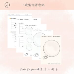 三張泡泡底圖:以不同構圖呈現,孩子可以自由著色,將心情吹進每一個泡泡裡